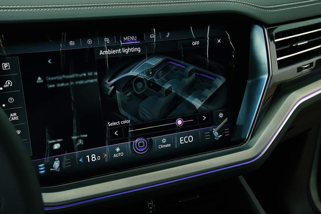 Nội thất – Đỉnh cao tiện nghi khoang cabin Touareg được hoàn thiện tỉ mỉ với vật liệu da Savona cao cấp và kim loại sang trọng. Trung tâm là màn hình Innovision Cockpit kích thước lên tới 15 inch, hiển thị sắc nét và dễ thao tác. Ghế trước chỉnh điện, nhớ vị trí, sưởi và thông gió, hệ thống âm thanh Dynaudio cao cấp mang đến trải nghiệm giải trí hoàn hảo.